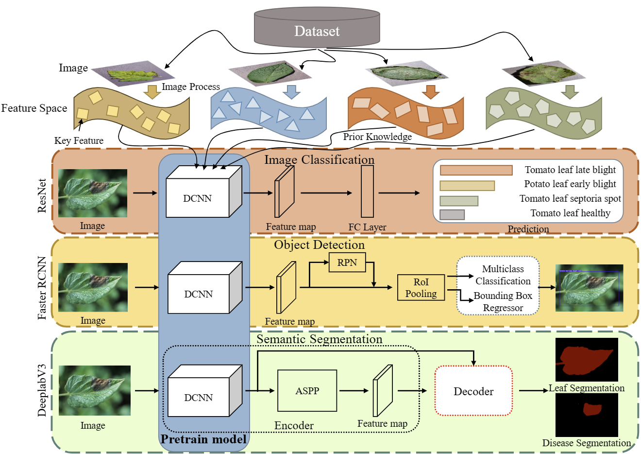 Plant diseases threaten global food security by reducing crop yield, so diagnosing plant diseases is critical to agricultural production. Artificial intelligence technologies gradually replace traditional plant disease diagnosis methods due to their time-consuming, costly, inefficient, and subjective disadvantages. As a mainstream AI method, deep learning has significantly improved plant disease detection and diagnosis for precision agriculture. In the meantime, most of the existing plant disease diagnosis methods usually adopt a pre-trained deep learning model to support diagnosing diseased leaves. However, the common-used pre-trained models are from the computer vision dataset, not the field of botany, which hardly makes the pre-trained models have sufficient domain knowledge about plant disease. Furthermore, this pre-trained way makes the final diagnosis model more difficult to distinguish between different plant diseases and lowers the diagnostic precision. To address this issue, we propose a series of commonly used pre-trained models based on plant disease images to promote the performance of disease diagnosis. In addition, we have experimented with the plant disease pre-trained model on plant diseases diagnosis tasks such as plant disease identification, plant disease detection, plant disease segmentation, and other subtasks. The extended experiments prove that the plant disease pre-trained model can achieve higher accuracy than the existing pre-trained model with less training time, thereby supporting the better diagnosis of plant diseases.
